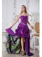 Are you joining in the party? Do you want to be the focus point? But now, the chance is coming, the moment of the good choice of dress is so important. The whole appearance is high-low style with glaring beadwork, handmade flowers, and the most important is the purple, sweetheart as well as made of taffeta, which will show your charming and elegance, the colorful print inside of the dress take your breath away. The last the sweep is your secrete, because you are the queen!