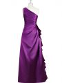 Home >  Prom Dresses >  Junior Prom Dresses > Purple Elastic Woven Satin Side Zipper Evening Dress Sleeveless Floor Length Beading and Ruching and Pleated