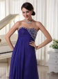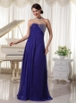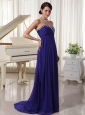 Purple Empire Chiffon Brush Train Custom Made Evening Party Dress With Beading Decorated Sweetheart