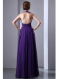 Purple Empire Halter Top Prom Dress Backless Chiffon Beading