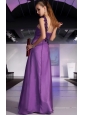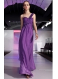 Purple Empire One Shoulder Floor-length Chiffon Beading Prom / Evening Dress