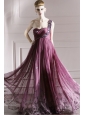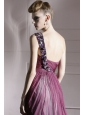Purple Empire One Shoulder Floor-length Chiffon Rhinestones Prom Dress