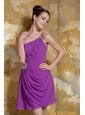 Purple Empire One Shoulder Mini-length Chiffon Beading Prom Dress