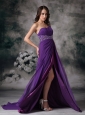 Purple Empire One Shoulder Prom / Evening Dress Chiffon Beading