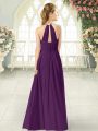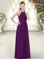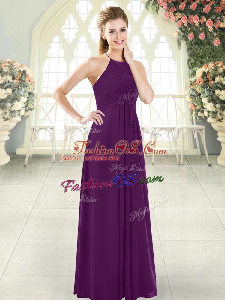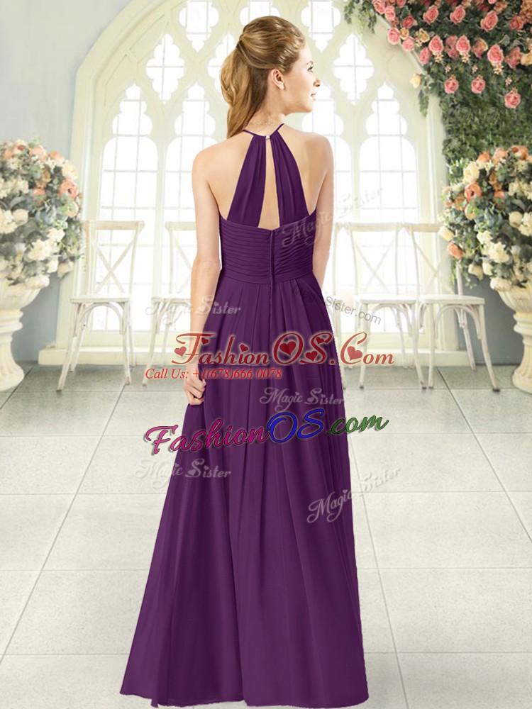Purple Empire Ruching Dress for Prom Zipper Chiffon Sleeveless Floor Length