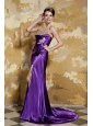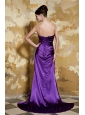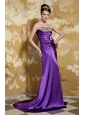 Purple Empire Strapless Brush Train Elastic Woven Satin and Leopard Beading Prom Dress
