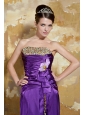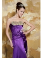 Home >  Prom Dresses >  Cheap Prom Dresses > Purple Empire Strapless Brush Train Elastic Woven Satin and Leopard Beading Prom Dress