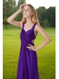 Purple Empire Straps Floor-length Chiffon and Taffeta Ruch Prom Dress