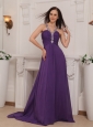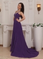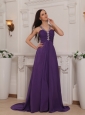 Home >  Prom Dresses >  Beautiful Prom Dresses > Purple Empire V-neck Brush Train Chiffon Beading and Ruch Prom / Pageant Dress