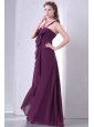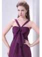 Purple Empire V-neck Straps Prom Dress with Bowknot