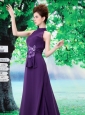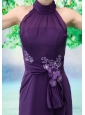 Purple High-neck In Salem For 2013 Prom Dress With Sash and Hand Made Flowers