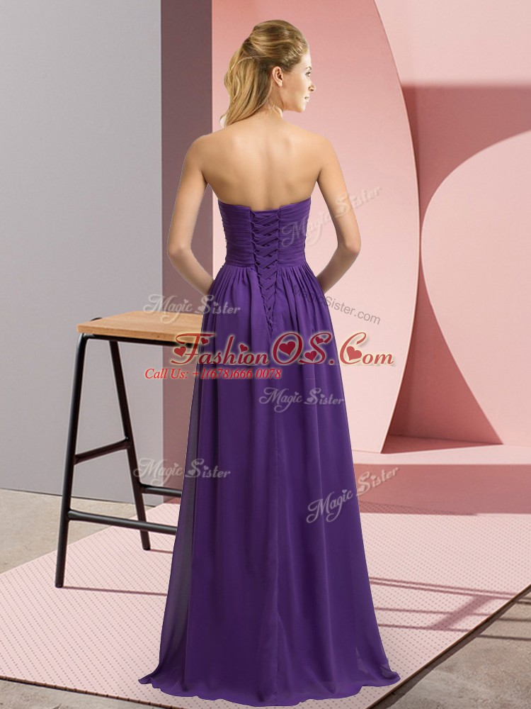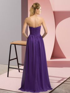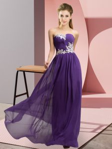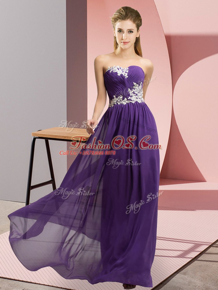 Purple Lace Up Prom Evening Gown Appliques Sleeveless Floor Length