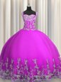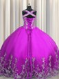 Purple Lace Up Quince Ball Gowns Beading and Appliques Sleeveless Floor Length