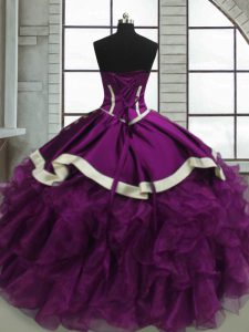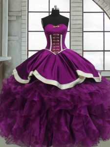 Purple Lace Up Quinceanera Gowns Beading and Ruffles Sleeveless Floor Length