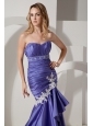 Purple Mermaid Sweetheart Wedding Dress Court Train Elastic Wove Satin Appliques