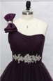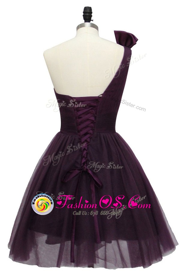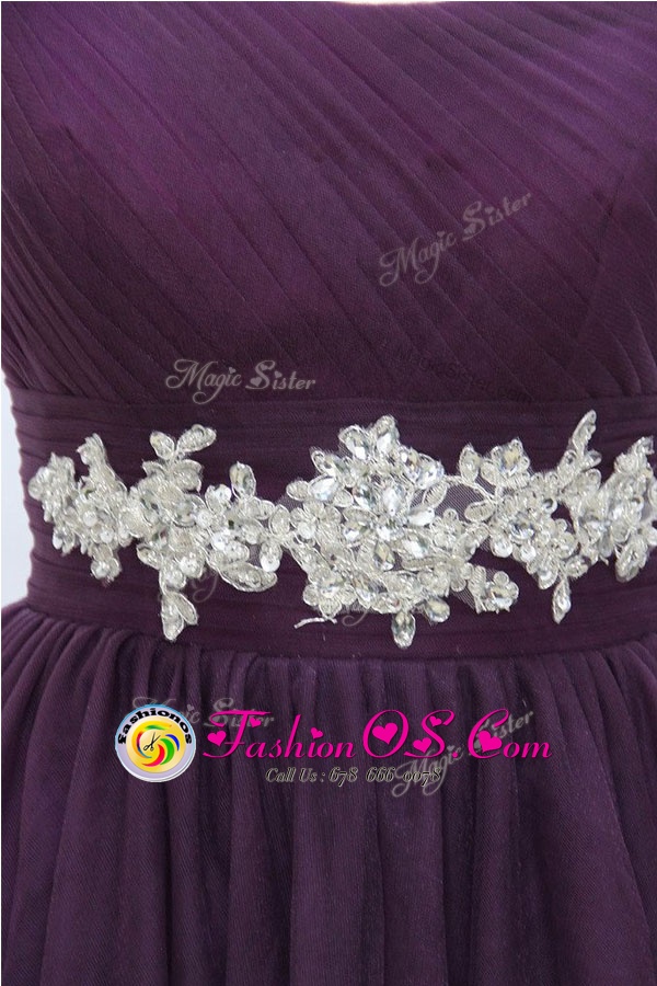 Purple One Shoulder Lace Up Beading Prom Dress Sleeveless
