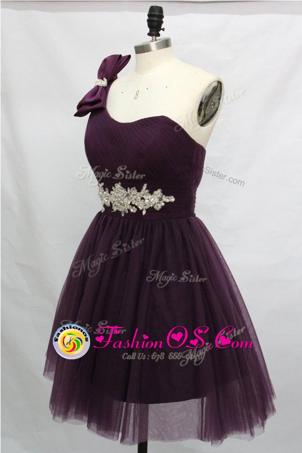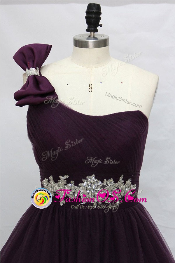 Home >  Prom Dresses >  Prom Dresses On Sale > Purple One Shoulder Lace Up Beading Prom Dress Sleeveless