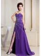 Purple Prom / Evening Dress With Beading and High Slit Brush Train