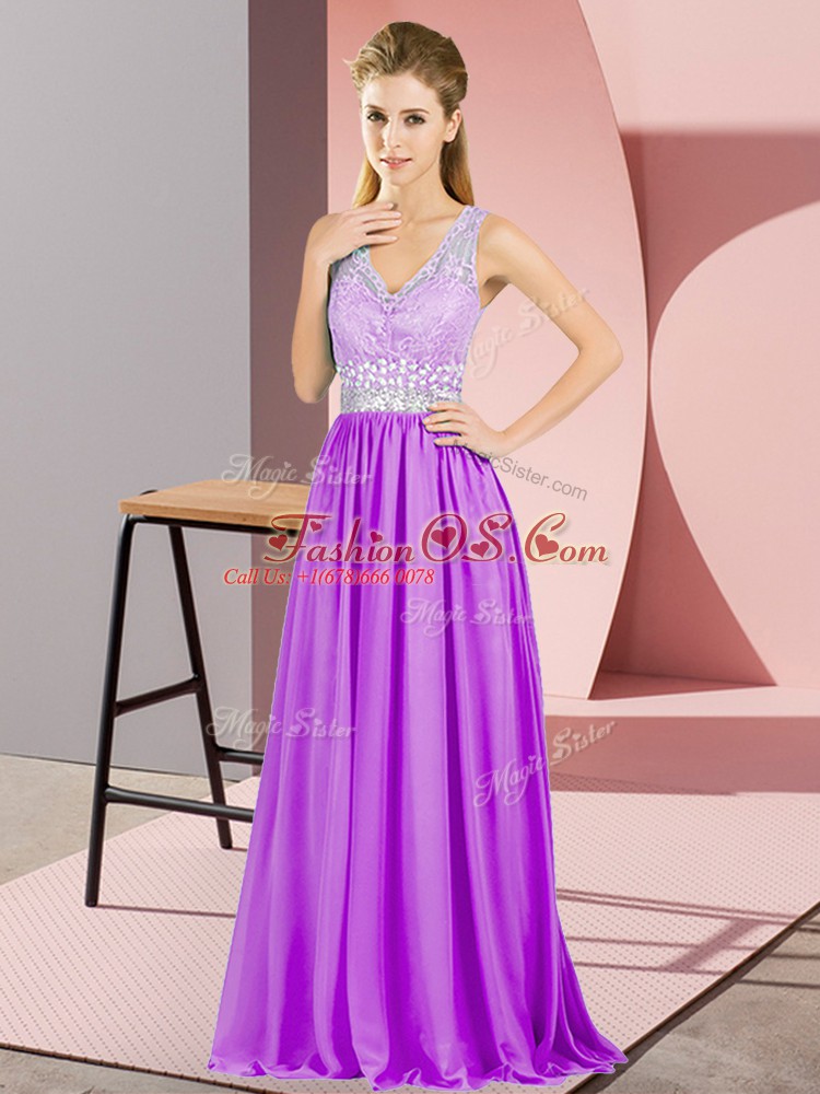 Purple Prom Gown Prom and Party and Military Ball with Beading and Lace V-neck Sleeveless Backless