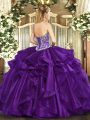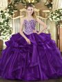 Purple Sleeveless Beading and Ruffles Floor Length Quinceanera Dress