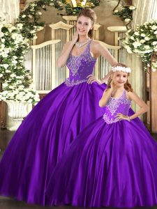 Purple Sleeveless Beading Floor Length Quince Ball Gowns
