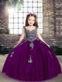 Purple Sleeveless Floor Length Appliques Lace Up Little Girls Pageant Dress Wholesale