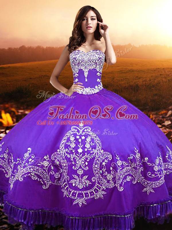 Purple Sleeveless Floor Length Beading and Appliques Lace Up Sweet 16 Dresses