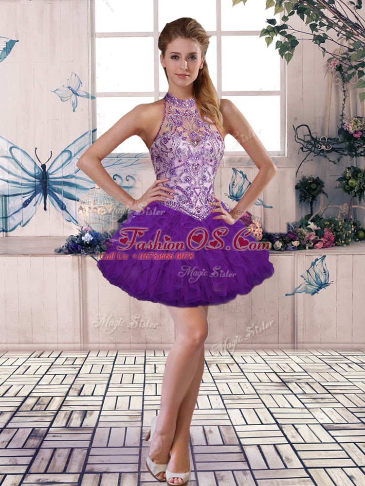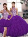 Purple Sleeveless Floor Length Beading and Ruffles Lace Up Quince Ball Gowns
