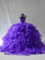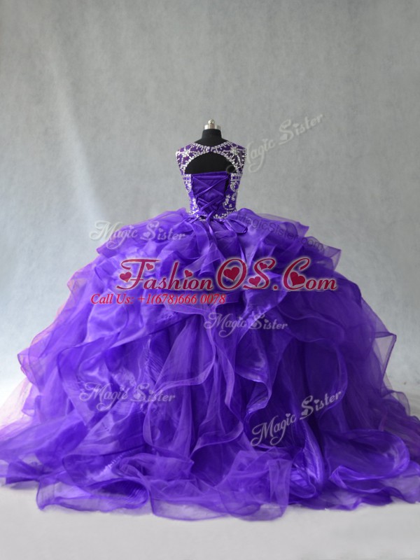 Purple Sleeveless Floor Length Beading and Ruffles Lace Up Sweet 16 Dress