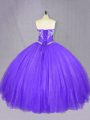 Purple Sleeveless Floor Length Beading Lace Up Quince Ball Gowns