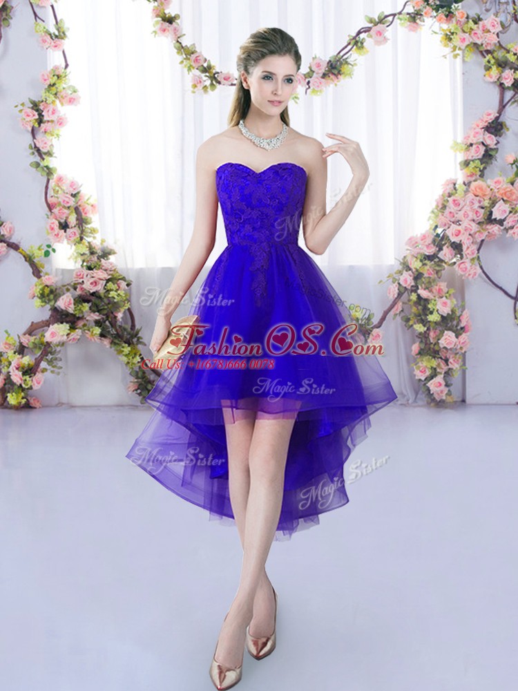Purple Sleeveless Lace High Low Quinceanera Dama Dress