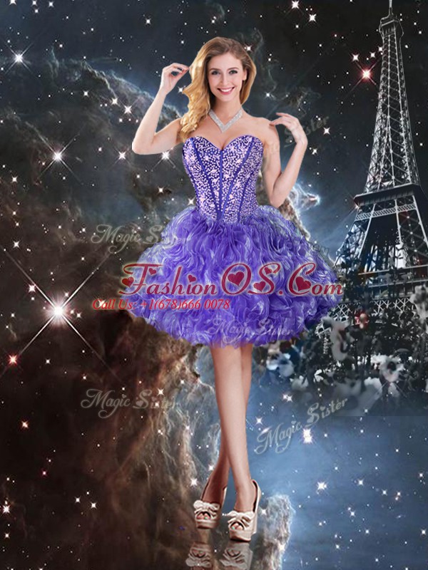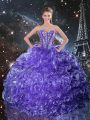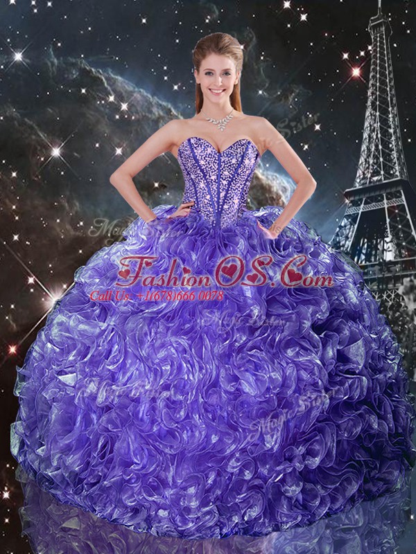 Purple Sleeveless Organza Lace Up 15 Quinceanera Dress for Military Ball and Sweet 16 and Quinceanera