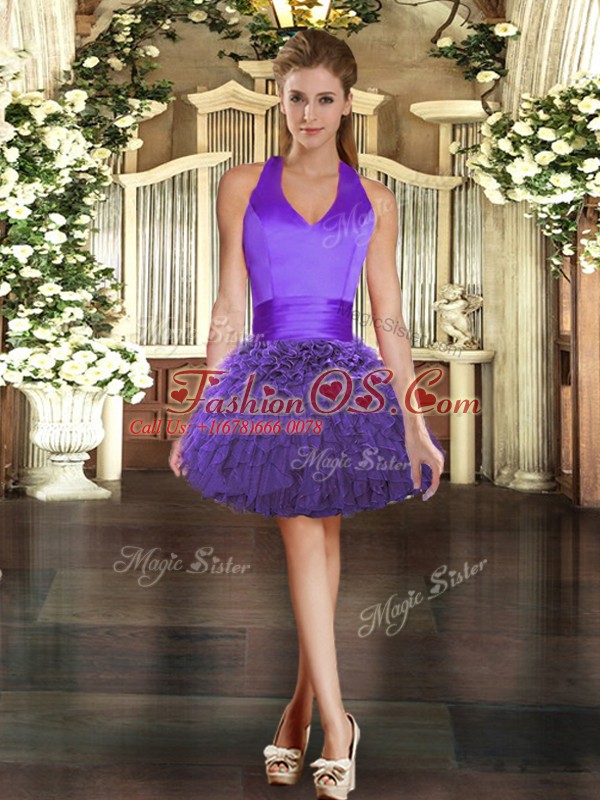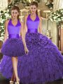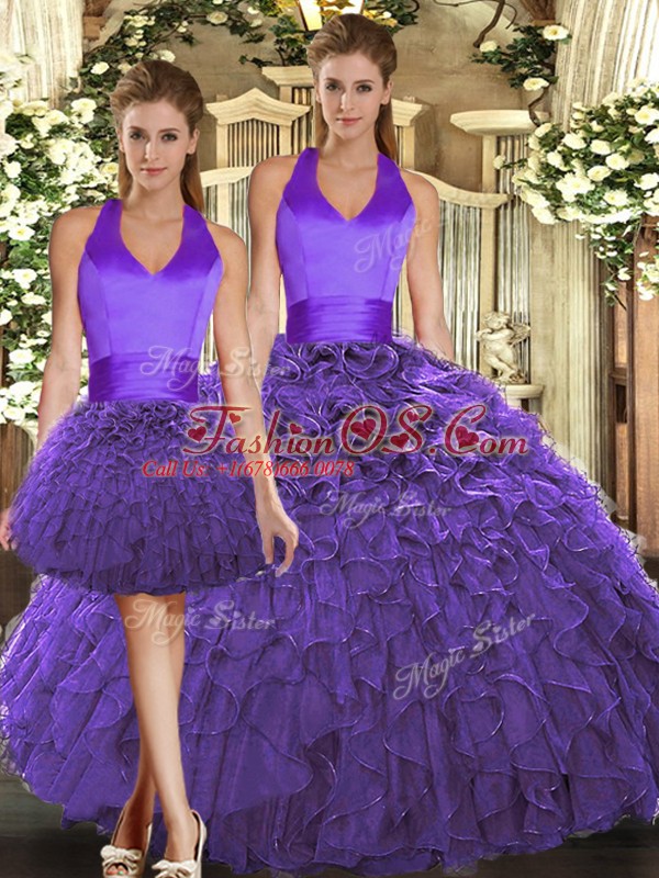 Purple Sleeveless Ruffles Floor Length Quince Ball Gowns