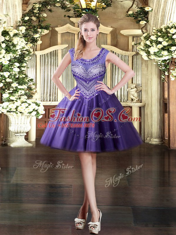 Purple Sleeveless Tulle Zipper Prom Evening Gown for Prom and Party
