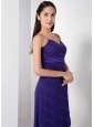 Look and feel serene in this purple evening gown. Held by spaghetti straps, the bodice features a twist in the center creating shape in this easily draped design.A fun, ruched belt accentuates a small waist, and sweet layers form the asymmetrical skirt for perfect flow as you glide and dance through your evening.