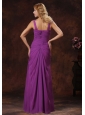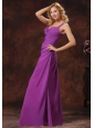 Purple Straps Ruched Bodice Discount Bridesmaid Dress Floor-length