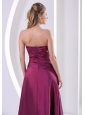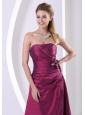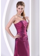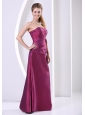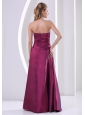 Simply designed dresses can also make a dramatic first impression, this one is a perfect example. It features a strapless bodice with a simple straight beading trimmed neckline and a pleated texture. Delicate floral embellishement adorns the left waist while the floor-length purple skirt is sleek and smooth with no redundant. Completes the design with fitted with zipper up back.