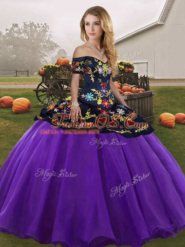 Purple Tulle Lace Up Quinceanera Gown Sleeveless Floor Length Embroidery
