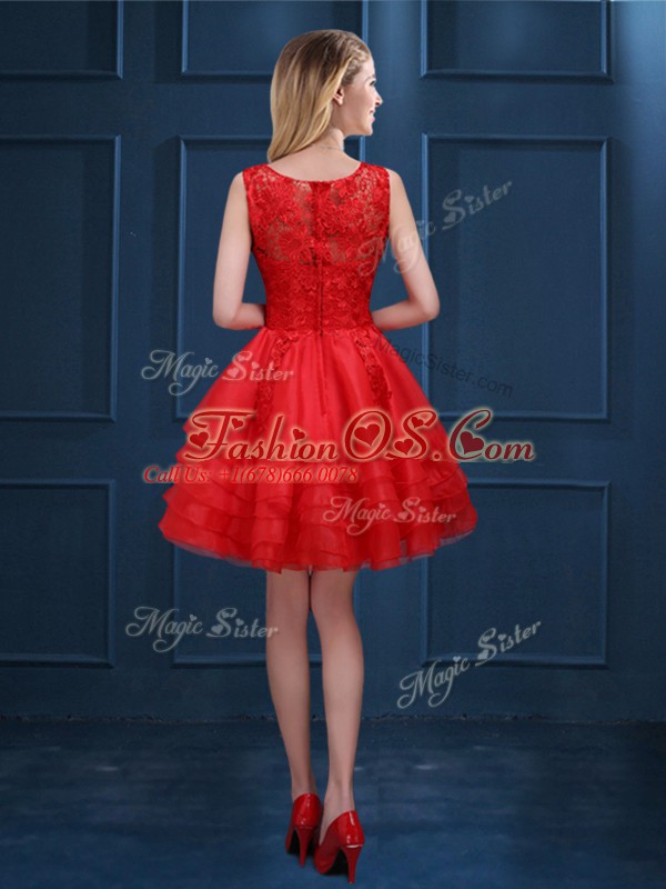Purple Tulle Zipper Bridesmaid Dress Sleeveless Knee Length Lace and Ruffled Layers