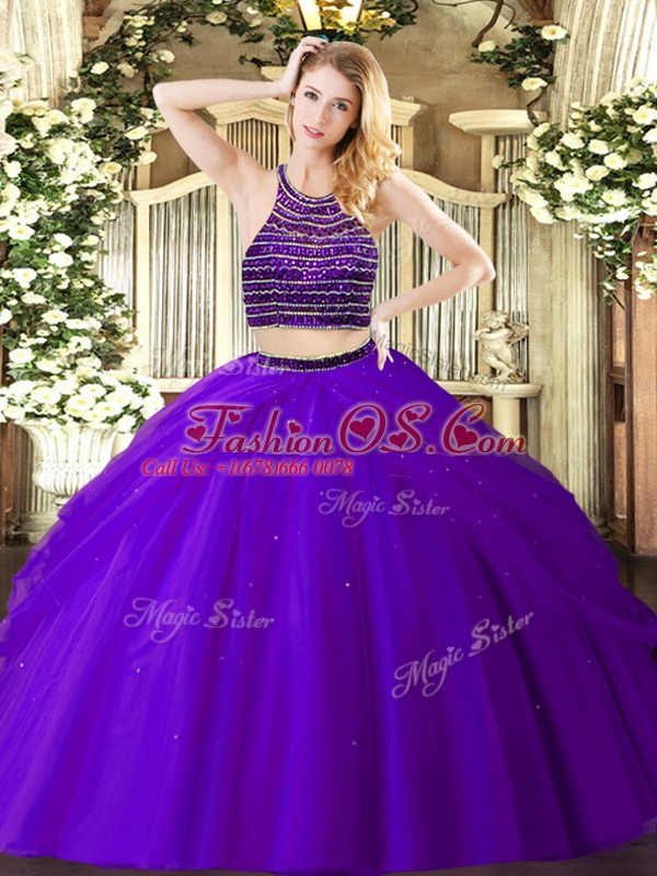 Purple Zipper 15 Quinceanera Dress Beading and Ruching Sleeveless Floor Length