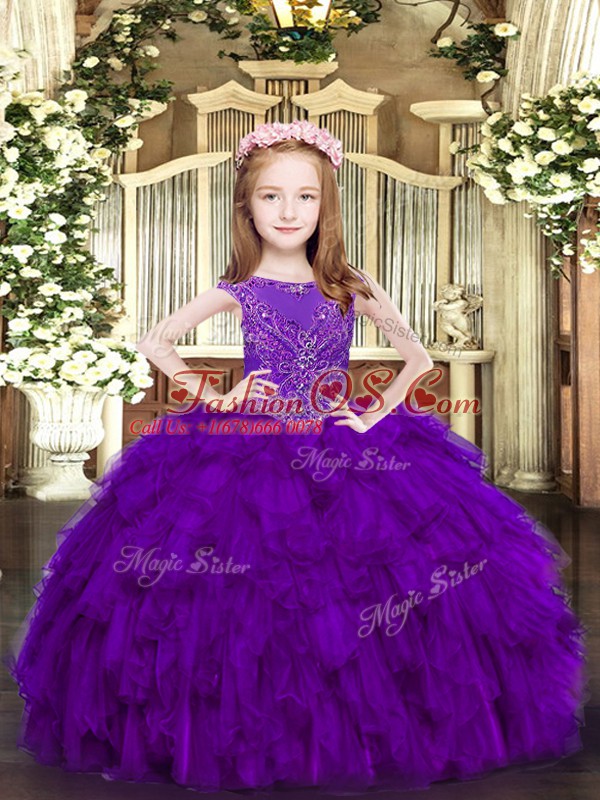 Home >  Special Occasion Dresses >  Lovely Little Girl Pageant Dresses > Purple Zipper Scoop Beading and Ruffles Little Girl Pageant Dress Organza Sleeveless
