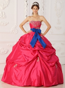Perfect Red and Blue Quinceanera Dress Strapless Taffeta Beading Ball Gown