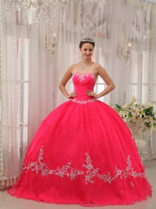 Pretty Red Quinceanera Dress Sweetheart Floor-length Organza Appliques Ball Gown