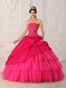Lovely Hot Pink Quinceanera Dress Strapless Organza and Taffeta Beading Ball Gown