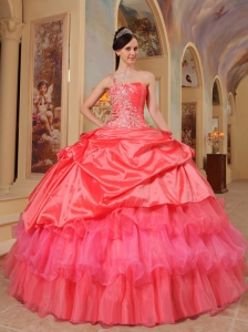 Coral Ball Gown Strapless Floor-length Taffeta Embroidery Quinceanera Dress