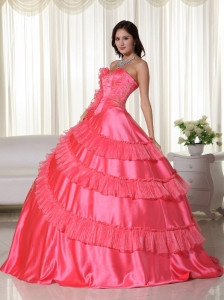 Sweet Coral Red Quinceanera Dress One Shoulder Taffeta Ball Gown