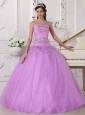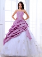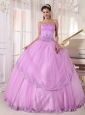 Pretty Rose Pink Quinceanera Dress Strapless Organza Appliques Ball Gown