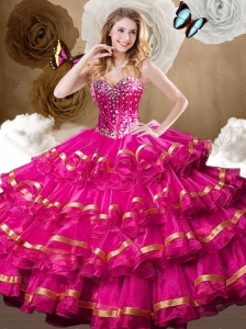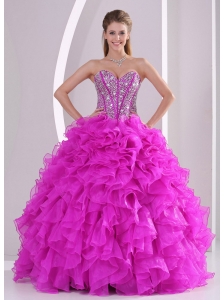 Hot Pink Quinceanera Dress Sweetheart Organza Beading A-line