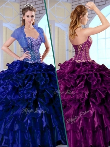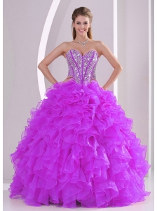 Brand New Dark Purple Quinceanera Dress Sweetheart Organza Beading Ball Gown