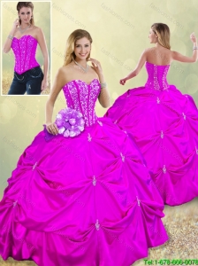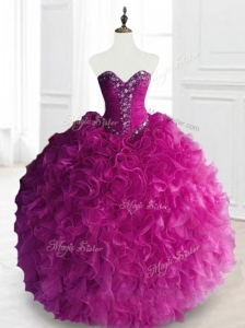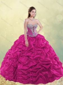 Fuchsia Quinceanera Dress With Beaded and Pick-ups Ball Gown For Custom Made